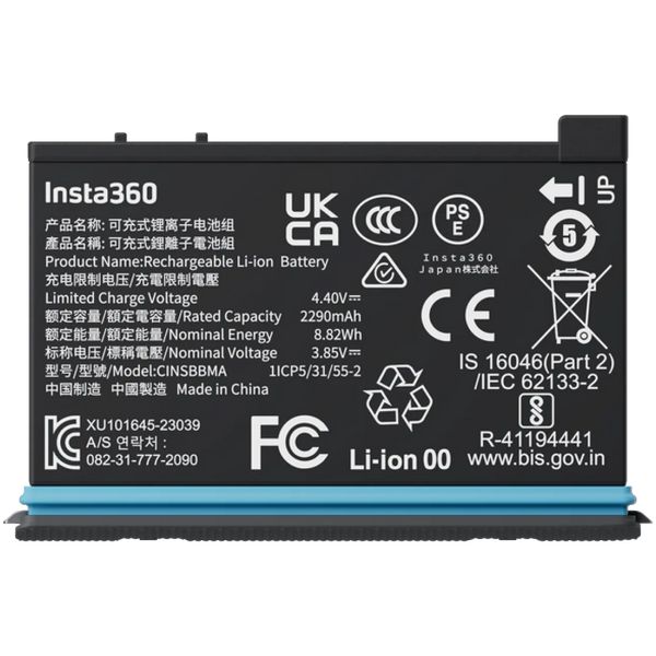 Оригинальный литий-ионный аккумулятор для камеры Insta360 X4. Напряжение 3.85 В, емкость 2290 мАч (8.82 Втч). Обеспечивает около 1 часа записи в 8К или 2 часов записи в 5.7K 30р (время варьируется в зависимости от включенных функций съемки и температуры). Сохраняет работоспособность при температурах до -20° С. Резиновый уплотнитель под верхней крышкой обеспечивает герметичность батарейного отсека при погружении камеры под воду. В комплекте идет пластиковый защитный кейс с отделением для карты памяти формата microSD.