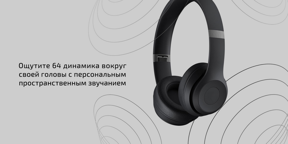 Beats Solo 4 поддерживают пространственное звучание с отслеживанием положения головы, за которое отвечают встроенные гироскопы. Прослушивая треки в соответствующих форматах или просматривая видео, вы сможете ощутить, будто вас окружает система из 64 динамиков, а звук как будто окружает вас, а не концентрируется в ушах. Вы сможете открыть для себя новое звучание знакомых композиций и даже ощутить атмосферу концерта.