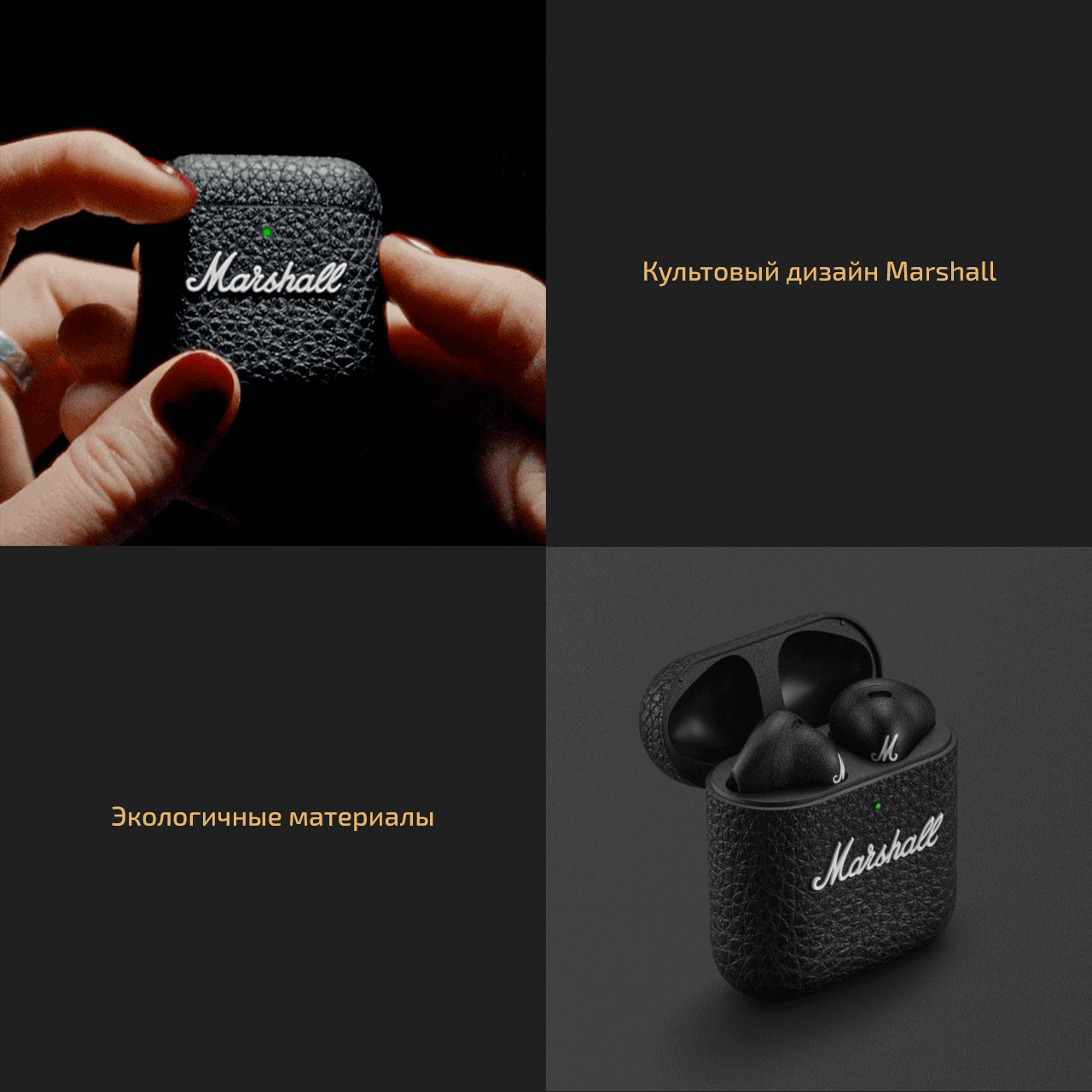 Marshall Minor IV не только великолепно звучат, но и отличаются высоким качеством сборки, подчёркивающим фирменный стиль. Каждый элемент тщательно проработан, чтобы обеспечить комфорт и долговечность. Эргономичная форма наушников позволяет им идеально фиксироваться в ушах, а материалы премиум-класса гарантируют, что Minor IV прослужат вам долгие годы и вы будете испытывать эстетическое удовольствие, доставая их из зарядного кейса.