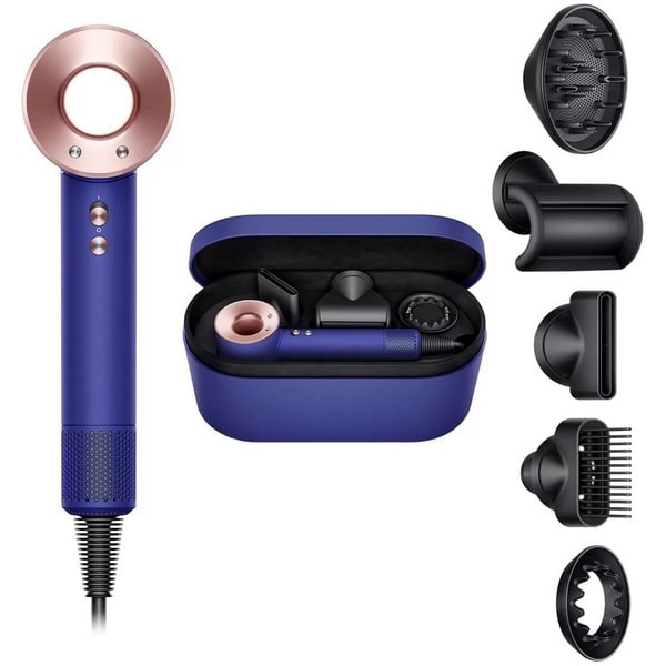 Дополнительная информация100 °C быстрое высушивание и укладка волос, 28 °C поток прохладного воздуха, 60 °C бережное высушивание, 80 °C стандартное высушивание волос, интеллектуальная система контроля температуры исходящего воздуха, магнитные насадки для укладки, мощный двигатель с цифровым управлением Dyson V9, функция подачи холодного воздуха (28 °C) используется для фиксации прически после укладки, четыре уровня нагрева