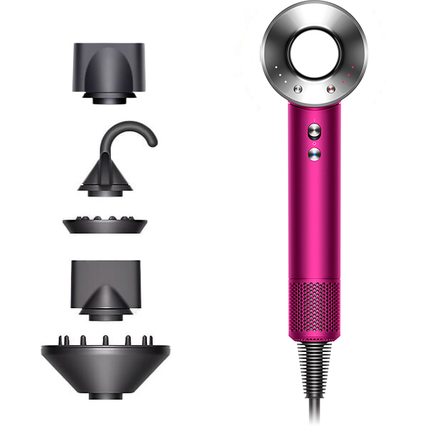 Дополнительная информация100 °C быстрое высушивание и укладка волос, 28 °C поток прохладного воздуха, 60 °C бережное высушивание, 80 °C стандартное высушивание волос, интеллектуальная система контроля температуры исходящего воздуха, магнитные насадки для укладки, мощный двигатель с цифровым управлением Dyson V9, функция подачи холодного воздуха (28 °C) используется для фиксации прически после укладки, четыре уровня нагрева