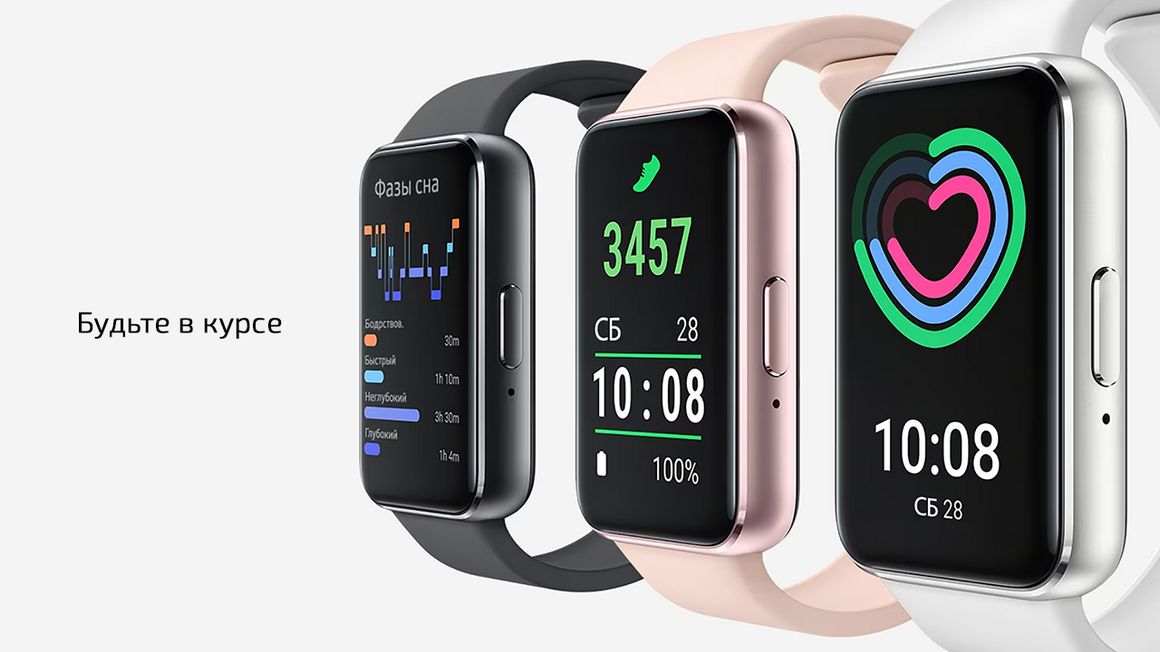 Мониторинг: количество шагов, потраченные калории, продолжительность и качество сна, пройденное расстояние, пульс, уровень кислорода в крови, уровень стресса и восстановление
