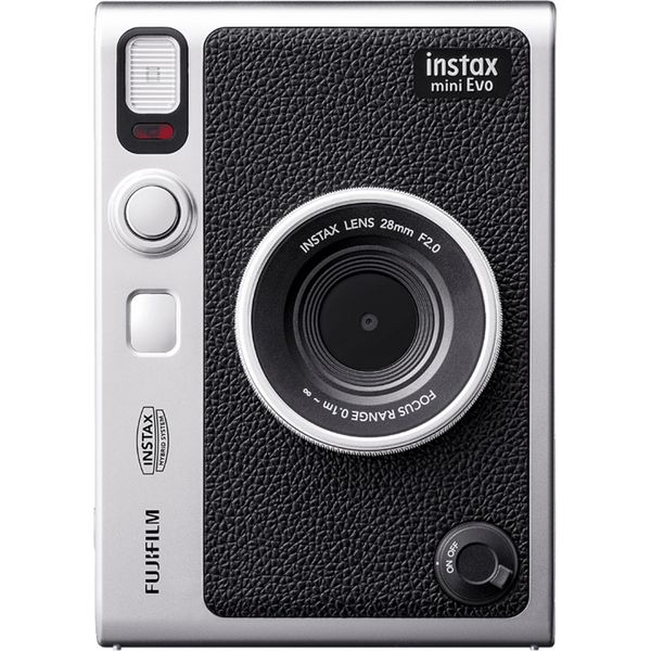 FUJIFILM instax mini EVO сразу привлекает внимание своим внешним видом: он выполнен в ретро-стиле со вставками из искусственной кожи, напоминающем классические плёночные камеры. Устройство оборудовано башмаком для аксессуаров — сюда можно установить светодиодный осветитель. Также на корпусе предусмотрено резьбовое гнездо для крепления на штативе или другом держателе.