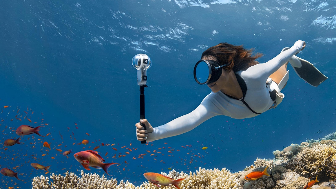 Продолжателям дела Кусто будет полезно и то, что камера водонепроницаема и выдерживает до 15 метров без бокса, поэтому бассейн, море и дождь не требуют подготовки. Если нужно глубже – используется Invisible Dive Case (в комплект не входит), рассчитанный до 60 метров и при этом остающийся невидимым в 360-градусных видео. Это удобно и для подводных селфи и для видео «третьего лица» без лишних артефактов в кадре.