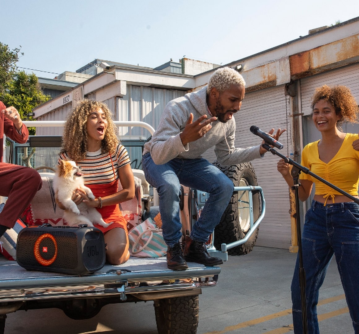 Нет необходимости петь в одиночку, если, конечно, вы не хотите быть в центре внимания. Подключите два беспроводных микрофона вместе и слушайте оба голоса, идеально сочетающиеся через динамик, в течение 6 часов воспроизведения.