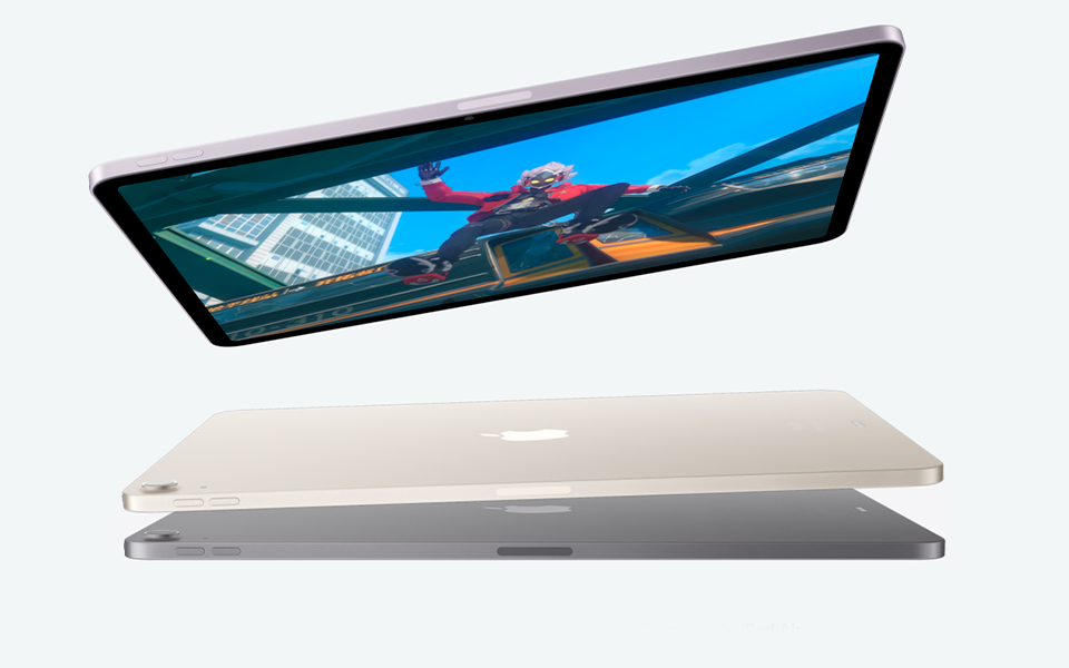 Apple iPad Air получил фирменный чип Apple M2. Он включает восьмиядерный основной процессор, десятиядерный графический и нейронный движок с 16 ядрами. Быструю работу гаджета поддерживает 8 ГБ оперативной памяти. Для хранения пользовательских файлов и установки программ предусмотрено встроенная память 128 ГБ.