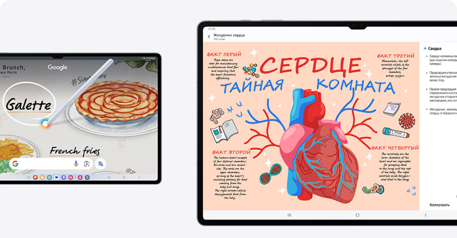 Искусственный интеллект Galaxy AI и электронное перо S Pen, идущее в комплекте, открывают поистине впечатляющие возможности для творчества. На огромном AMOLED-дисплее очень приятно писать или рисовать, а с помощью таких функций, как AI-рисунок или Ассистент по заметкам, реализовать свои идеи будет ещё проще.