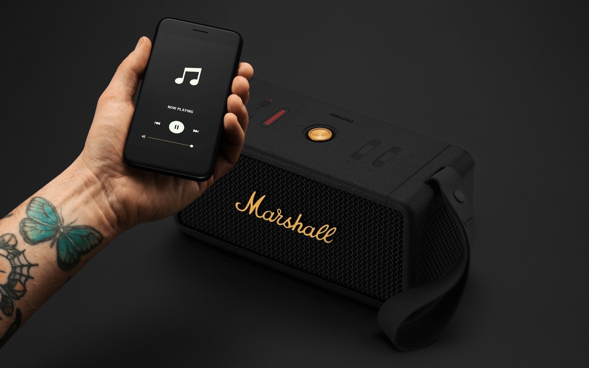 На верхней панели Marshall Middleton расположены аналоговые элементы управления и индикаторы с подсветкой, а с помощью фирменного приложения Marshall можно настроить звук по своему вкусу. Вы можете регулировать эквалайзер, а также создавать настраивать стереопару с другими колонками Marshall с функцией Stack Mode.