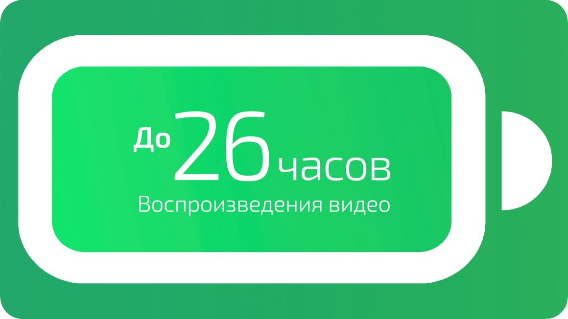 Время работы в режиме просмотра видео до: 26 ч