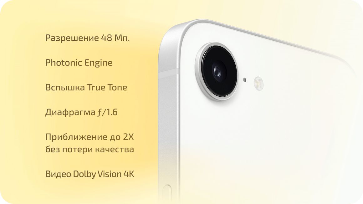 Особенности камеры: Универсальная кнопка управления камерой: Экспозиция, Глубина, Зум, Камеры, Стили, Тон. Вспышка True Tone. Коррекция объектива (сверхширокоугольная). Режим серийной съемки. Портреты нового поколения с фокусировкой и контролем глубины резкости. Интервальная съемка. Снижение шума ветра. Микширование аудио. Оптическая стабилизация изображения со сдвигом матрицы