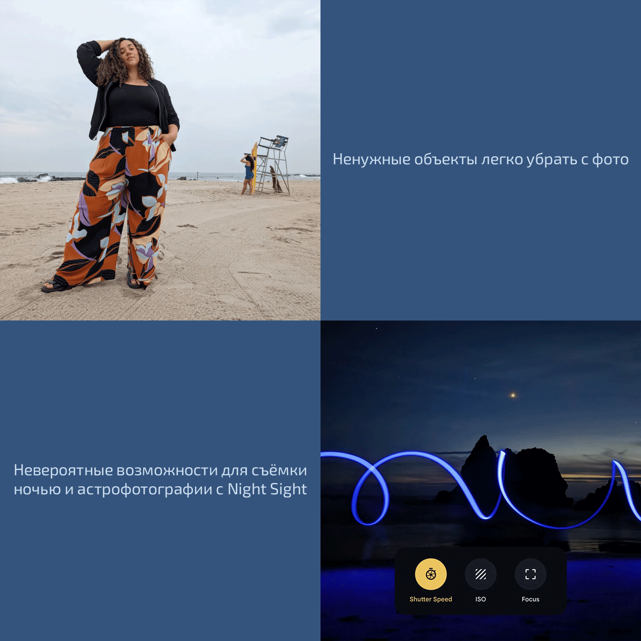 Да, про камеру Pixel 9 Pro XL можно говорить долго и много! Возможности устройства оценят не только пользователи, желающие получить отличный результат, просто нажав кнопку, но и те, кто хочет точнее контролировать процесс съёмки, ведь отличительной особенностью Pro-моделей серии Pixel 9 являются не только более совершенные камеры, но и ручные настройки экспозиции и фокуса.