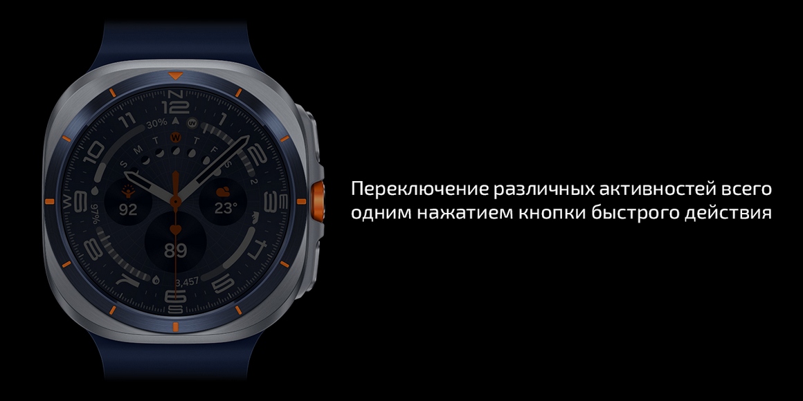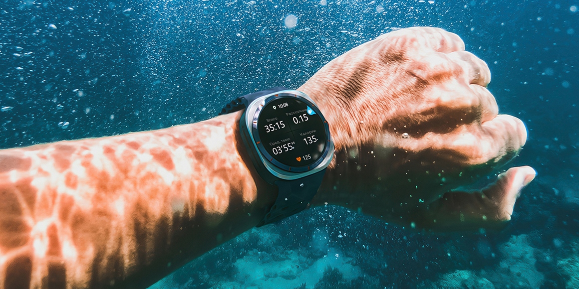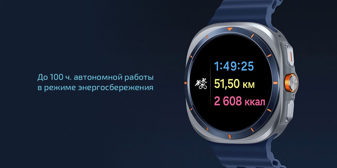 Испытания и сложные условия не ограничиваются возможными ударами и падениями. Например, на трейле может быть температура ниже нуля или, наоборот, приближающаяся к знойному жару пустыни. Для Galaxy Watch Ultra такие условия — обычная прогулка. Часы способны работать при температуре от -20 °C до 55 °C. Ну и, конечно, они с удовольствием поплавают вместе с владельцем, ведь гаджет выдерживает погружение на глубину до 100 метров.